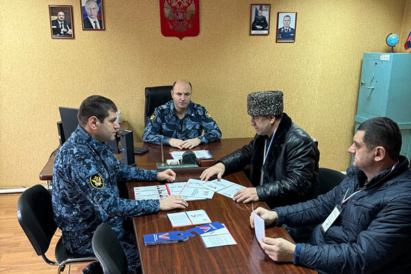 В ФКУ СИЗО-2 УФСИН России по Республике Дагестан прошла рабочая встреча начальника учреждения Мурада Ахмедова с председателем участковой избирательной комиссии № 0482 г. Дербент Самуром Алиевым. В мероприятии также приняли участие заместитель начальника учреждения Борис Келбиханов и член участковой избирательной комиссии Низами Гаджиев. В ходе встречи стороны обсудили вопросы подготовки следственного изолятора № 2 к проведению предстоящих выборов Президента Российской Федерации, намеченных на 15-17 марта 2024 года. - В учреждении создана рабочая группа по подготовке и проведению выборов, определены лица, ответственные за организацию и проведение данного мероприятия, а также места для голосования, которые соответствуют предъявляемым требованиям. Возможность реализовать свое избирательное право будет предоставлена лицам, в отношении которых приговор не вступил в законную силу, то есть подозреваемым и обвиняемым, содержащимся в следственном изоляторе № 2 – сказал Мурад Ахмедов. В свою оче