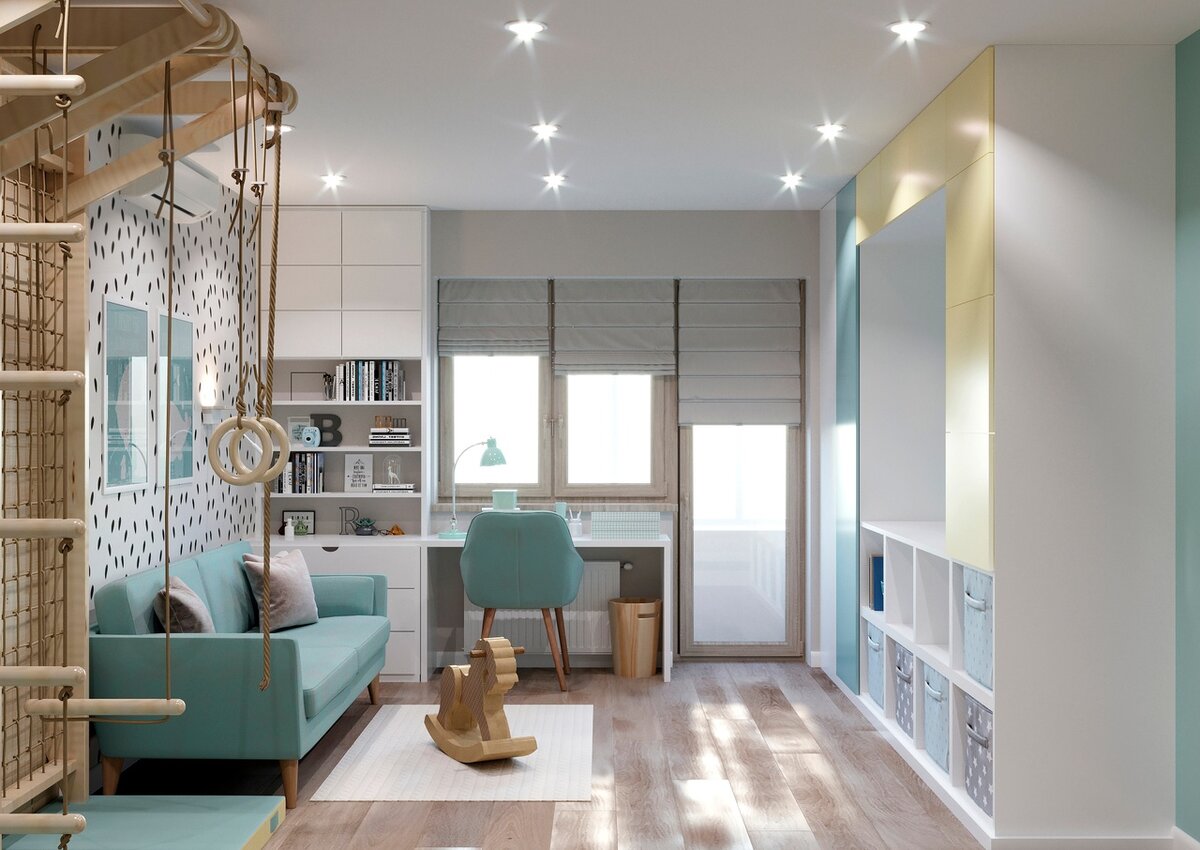 Какой должны быть идеальная детская для мальчика, которая может расти вместе с ребёнком, позволять ему оставаться достаточно активным, при этом оставлять возможность поддерживать порядок? Именно такую непростую задачу пришлось решать специалистам студии дизайна, и к этой задаче стремились подойти максимально креативно. О дальновидности Как бы это банально не звучало, но дети растут достаточно быстро. А значит и детская должна быть настолько функциональной, чтобы в любое время внести в ней изменения было достаточно просто. В правильной детской найдётся и запасное место для гостей или зона, где в случае потребности можно будет установить дополнительное спальное место. Если речь идёт о ребёнке дошкольного или младшего школьного возраста, то акцент стоит следует сделать на светлых и тёплых оттенках. В тоже время не стоит перегружать пространство слишком насыщенными и яркими красками, а потому несколько основных оттенков, акцентные стены и нейтральные тона в пространстве допустимы. От трёх
