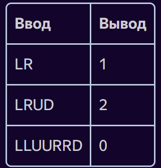Программа — это строка из букв L, R, D и U. Они соответствуют направлениям движения: L (left) — влево