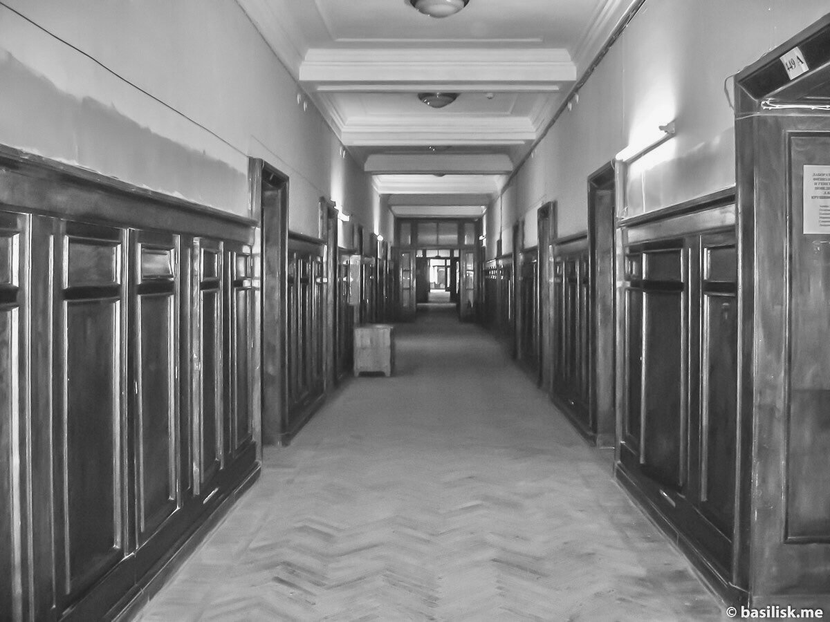 Нинель мотнула головой в сторону коричневой дерматиновой двери и Маша открыла дверь, За которой оказалась вторая дверь за которой, наконец, открылся взору просторный кабинет, с большим столом, к которому буквой “Т” приставлен второй длинный стол. Вокруг второго стола расположились стулья для посетителей. На главном столе видны целых три телефона, странный прибор с микрофоном и огромный настольный прибор с конем, где стояли карандаши идеально заточенные. Около главного стола стояло огромное начальственное кресло, а не стене висел портрет Горбачева.