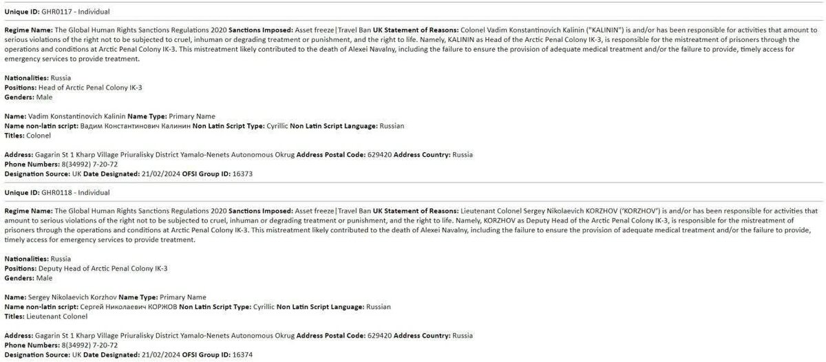 Великобритания ввела санкции против руководства колонии, в которой умер Алексей Навальный, — документ. Под ограничения попали шесть человек, сообщается на сайте правительства Великобритании