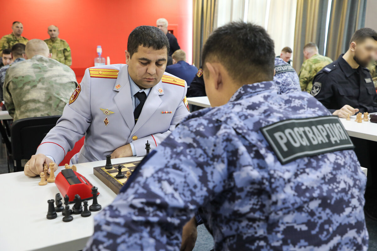 В Симферополе состоялся чемпионат по шахматам среди военнослужащих и сотрудников Южного округа войск национальной гвардии Российской Федерации. Участие в соревнованиях приняли 40 человек, разделенных на две группы – первая состояла из представителей территориальных органов и бригад, а во второй сразились шахматисты воинских частей. Открыл турнир командир симферопольского моторизованного полка Росгвардии полковник Эдуард Савенков. Офицер пожелал спортсменам честной борьбы и отметил, что на эти соревнования попали лучшие из лучших. В личном зачете золотую медаль завоевал старший лейтенант полиции Валерий С, серебро взял подполковник полиции Рустам З., третье место занял сержант Александр К.