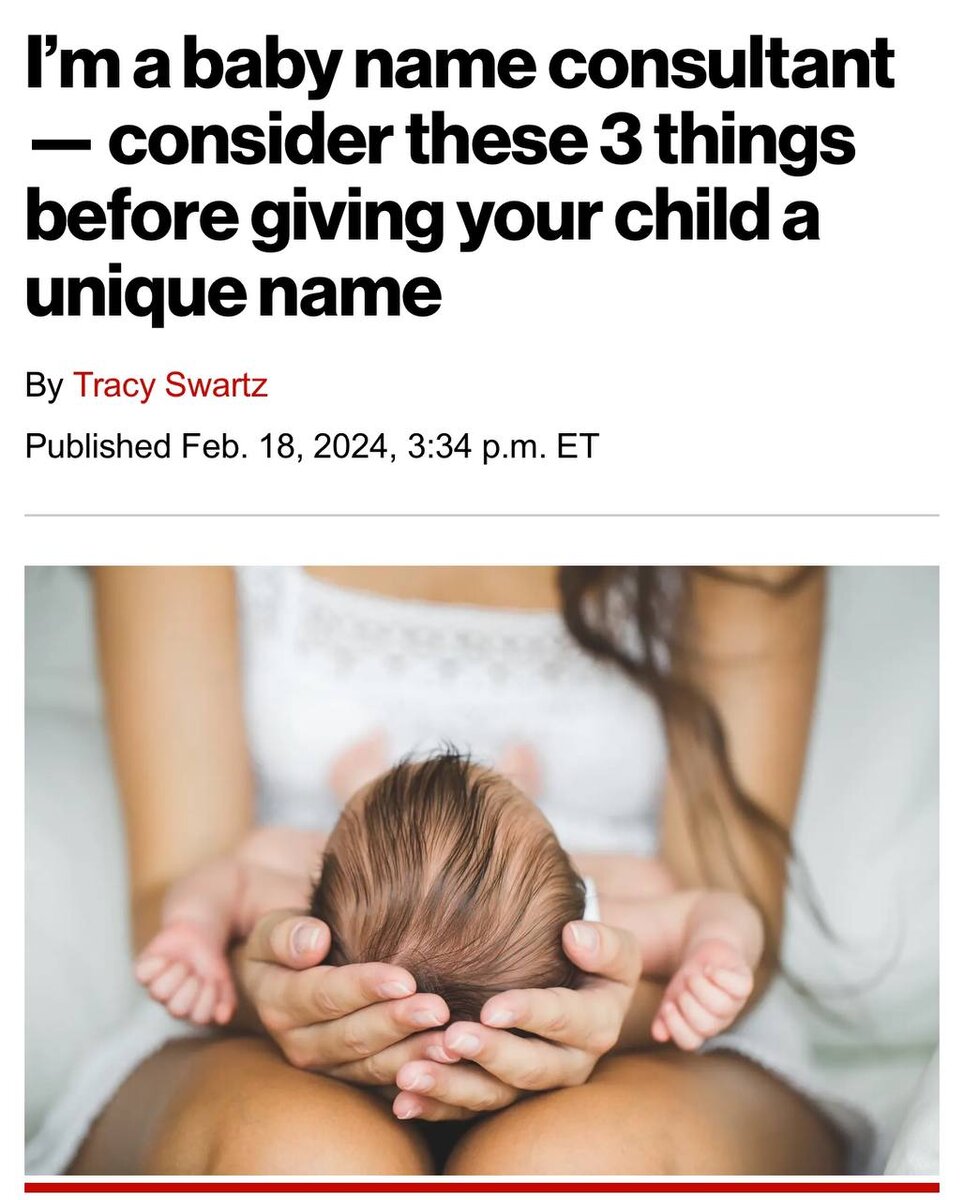 В США набирает популярность новая профессия — консультант по имени ребенка. После обращения будущих родителей, ребенку подбирают имя, чтобы оно было созвучно с фамилией и не имело обидных кличек. За свою услугу «эксперты» в среднем берут от полутора до пяти тысяч долларов. Есть случаи, когда за имя отдавали 10 тысяч долларов (почти 1 миллион рулей). В принципе, готовы проконсультировать дешевле, обращайтесь! ✔️Подписывайтесь на наш канал в Дзен, чтобы не пропустить новые публикации! ✔️Еще больше интересного в нашем канале в Телеграм! Подписывайтесь!! Канал Вписка в Форбс - ваш гид в мире успеха!