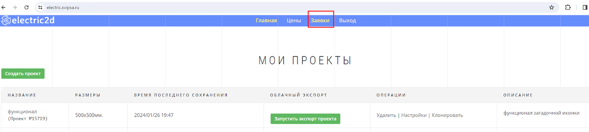 Итак, после того, как пользователь авторизовался на сайте, он попадает на страницу “Мои проекты”.