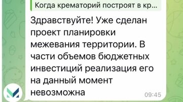 К 21 февраля стало известно, что в Краснодаре пока отложили строительство крематория. Проект планировки территории готов, но нет денег. В МЦУ Краснодара ответили на вопрос о том, когда в краевой столице возведут крематорий. Оказалось, что проект планировки территории будущего объекта уже есть, но пока работы заморозили из-за нехватки средств.