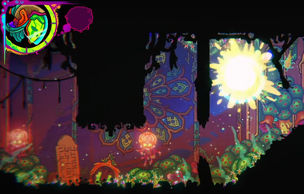 А запятую предлагаем поставить самостоятельно: либо после прочтения нашего небольшого обзора, либо после прохождения - будем рады вашим комментариям! Ultros - игра поистине необычная. Психоделика - главный лейтмотив игры - от картинки до сюжета. И первая ее составляющая, которая точно никого не оставит равнодушным - визуал! На самом деле скриншоты выглядят несколько перегруженными, и местами больше смахивают на игру "найди предмет" или какой-нибудь виммельбух. Но в процессе игры такого ощущения нет. Довольно выверенные "слои" - фона, объектов и самого игрового персонажа. Есть, конечно, отзывы из серии "выдри глаз", "продукт жизнедеятельности единорога", но большинство отмечает и целостность картинки, и красоту непривычно ярких локаций, так что отзывы: "это искусство", "потрясающе красиво" тоже имеются. Уж точно, это запоминается и впечатляет (а остальное - дело вкуса!). Саундтрек. Тут коротенько: его тоже очень хвалят! Интересная система в рамках метроидвании с элементами рогалика. Ва