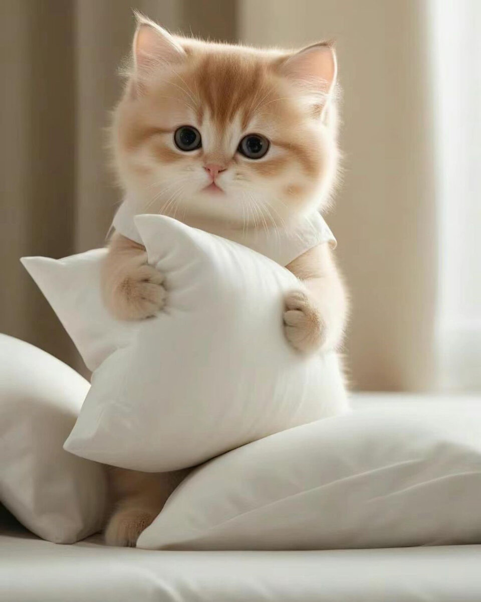 Посмотрите та этого малыша, созданного искусственным интеллектом. Он только что проснулся от своего волшебного кошачего сна и с интересом смотрит на мир. Правда же он милый?