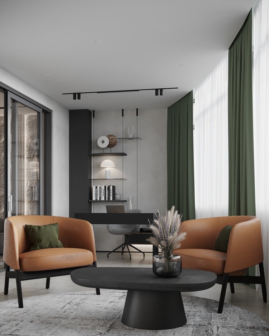 Рабочая зона и зона отдыха на балконе в квартире в ЖК «Акватория» в современном стиле.Как вам такое решение на балконе?