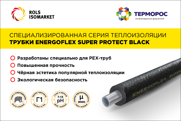 Складская программа Группы компаний «Терморос» пополнилась новой продукцией: трубная теплоизоляция Energoflex® Super Protect Black из вспененного полиэтилена с полимерным покрытием. Продукция всегда в наличии на складе в Москве и доступна к заказу. Группа компаний «Терморос» является официальным дилером крупнейшего отечественного производителя технической теплоизоляции ROLS ISOMARKET. На сегодняшний день у компании ROLS ISOMARKET огромный ассортимент теплоизоляционных изделий под брендом Energoflex. Продукция изготавливается на собственном производстве компании в г. Переславле-Залесском (Ярославская область) общей площадью 7000 м2. На производстве постоянно проводятся уникальные научные исследования, разрабатываются и внедряются новые методики испытаний и стандарты. И все это для того, чтобы качество продукции соответствовало российским и международным стандартам, и теплоизоляция Energoflex всегда отвечала требованиям рынка. Ассортимент складкой программы ГК «Терморос» постоянно расшир