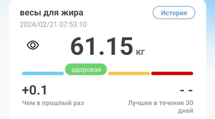 Эх, рыбка солёная, тьфу на тебя! Утреннее взвешивание: Спасибо солёной теше я получила +100 г. И это при том, что было выпито 2,2 л воды 🤦🏻♀️. В связи с этим пришлось скорректировать меню на сегодня. Напомню, что план был таким: Изменения произошли в 4 из 6 приёмах пищи 😅. Вот что получилось: - половина банана, нарезанная тонкими кружочками, съедается значительно медленнее 😊. - горбуша - иваси - мексиканская смесь - семечки - клюква - чай Так как сегодня нашла в закромах семечки и вяленую клюквы, то решила ими и заменить грецкие орехи и курагу. По калориям вышло меньше, чем планировалось 🤭. Все перекусы и полдник снова здесь: Итого: Снова сильный недобор, но, спасибо рыбе, белка достаточно много 👍🏻. По воде сегодня опять план перевыполнила 💪🏻: Завтра приезжает муж - не знаю, удастся ли 4 дня продержаться за запланированном питании, но я постараюсь 💪🏻. А как ваши стройные дела?