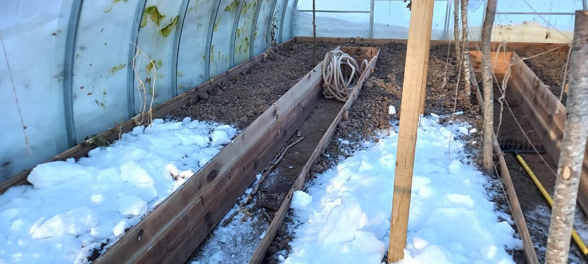 Добрый день, дорогие читатели, Пока не растаял снег, Вы можете успеть подготовить теплицу к весенним посадкам. Казалось бы, что можно сделать зимой? Но как раз можно выполнить очень важные для растений действия: засыпать грядки снегом. Дело в том, что снег выполняет сразу 2 очень полезные функции: 1) Растения очень любят талую воду, поэтому весной, когда все растает, они скажут Вам "спасибо". 2) Снег предварительно прогреет немного почву, и пересадка рассады пройдёт с меньшим стрессом, а соответственно, и урожай Вы получите раньше и в большем объёме. Останется лишь по весне помыть теплицу. Если Вы проживаете на даче зимой, то Вы можете даже на протяжении всей зимы подкидывать в теплицу снег, а как растает, добавлять его снова. Кстати, т.к. часть снега с участка уйдёт в грунт теплицы, то и таяние снега по весне приведёт к меньшему затоплению участка, так что одни плюсы. Желаю Вам приятной зимней работы на воздухе и хорошего урожая летом!