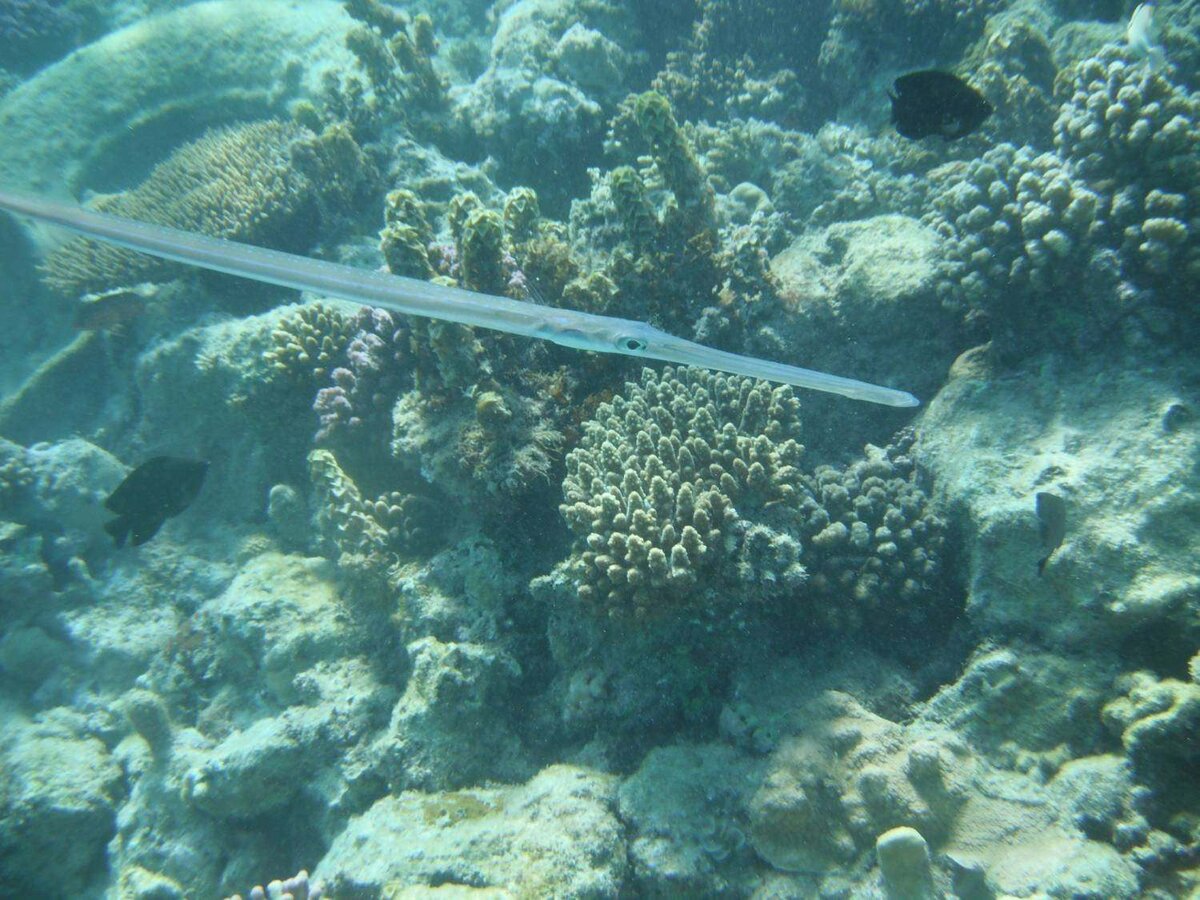 Рыба-игла (лат. Syngnathus acus) — вид морских рыб из семейства игловых (Syngnathidae). Обитает в Красном море и других тропических и субтропических водах по всему миру. Внешний вид Рыба-игла имеет удлиненное, тонкое тело, напоминающее иглу. Ее длина обычно составляет от 15 до 30 сантиметров. Тело покрыто костными пластинками, которые образуют защитный панцирь. Рыба-игла имеет длинный, трубчатый рот, который используется для всасывания добычи. Окраска Окраска рыбы-иглы варьируется в зависимости от среды обитания. В Красном море она обычно имеет желтовато-коричневый или зеленоватый цвет с темными полосами или пятнами. Эта окраска помогает ей сливаться с окружающей средой и избегать хищников. Поведение Рыба-игла — медлительная и скрытная рыба. Она проводит большую часть времени, прячась среди водорослей, кораллов и других укрытий. Рыба-игла — засадный хищник, который поджидает добычу из укрытия и быстро всасывает ее своим трубчатым ртом. Питание Рыба-игла питается в основном мелкими рако