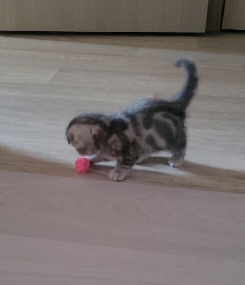 Герка, как мы его зовём сокращённо, тот еще непоседа. Как и любой котёнок - ребёнок очень энергичный, а что ему, покушал, поспал и снова играть. Закупили ему самых разных игрушек, чтобы кысик развлекался и ему было весело на новом месте. Перво-наперво полюбился розовый шарик с погремушкой, гоняли его всей семьей по квартире, а потом дружно искали под диваном, за шкафом или еще где-нибудь куда он мог закатиться. Котька резвился с ним день и ночь, поэтому задорный звон еще долго звучал в наших ушах, по звуку можно было определить чем занимается наш новый член семьи и в каком углу квартиры он находится)