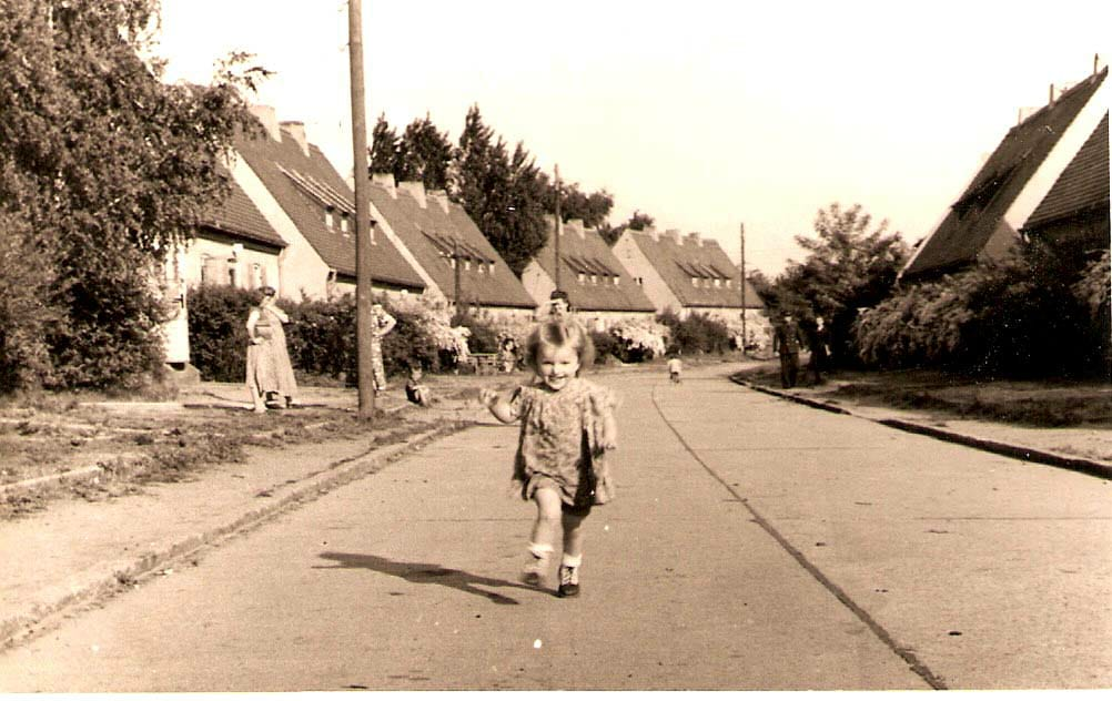 /1955 год. Лето. Вернойхен. Гарнизонный жилой городок. Когда-то, уже после нас эту улицу назовут Коломыйская. Потому как все её жители заселили эти дома после перевода полка из Коломыи в Вернойхенский гарнизон, в Германию. Наш дом на левой стороне улицы, второй с конца. Фотографирует отец. К нему бежит моя сестренка. Позади нее мама смотрит из-под руки…/