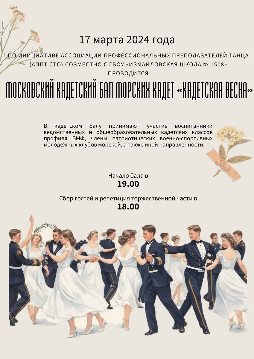 17 марта 2024 года (воскресенье) проводится МОСКОВСКИЙ КАДЕТСКИЙ БАЛ МОРСКИХ КАДЕТ