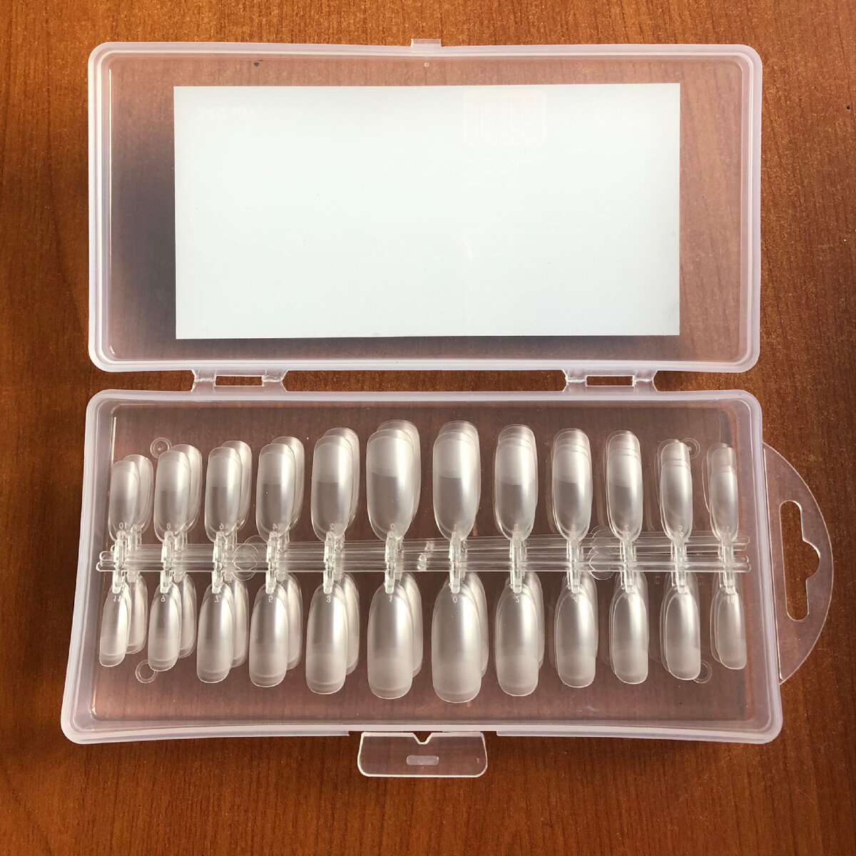 Нам очень повезло. Придумали гелиевые типсы. Это готовая, ровная дополнительная ногтевая пластина. Типсы бывают разной длины, формы, в каждом в большинстве наборов 12 размеров и 240 штук. Хватит почти на год. Стоит такая коробочка 280 рублей.