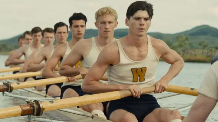 В сети вышел новый фильм Джорджа Клуни – режиссера Джорджа Клуни. «Парни в лодке» (The Boys in the Boat) – история о команде гребцов из Сиэтла, дошедшей до Олимпийских игр-1936. Команду собирает тренер Элвин Албриксон (Джоэл Эдгертон) – талантливый спортсмен сам, теперь на месте наставника и каждый год пытается выиграть те или иные соревнования (чего очень ждут какие-никакие спонсоры). Гребцы из Вашингтонского университета стабильно проигрывают более «дорогим» командам из престижных вузов Америки, где не только обмундирование лучше, но и навык: весла у мальчишек чуть ли не с яслей. А Элвину приходится работать с тем, что есть. На отбор в команду пришла сотня парней. Один беднее другого: в городе безработица, и соревнования по гребле – это шанс получить грошик и пожить в общаге. Джо Ранц (Каллум Тернер) пришел вместе с другом Роджером и оба попали в десятку лучших. Теперь им предстоит тренироваться до изнеможения. Учеба в универе на инженера и любимая девушка Джойс подождут. Клуни ка