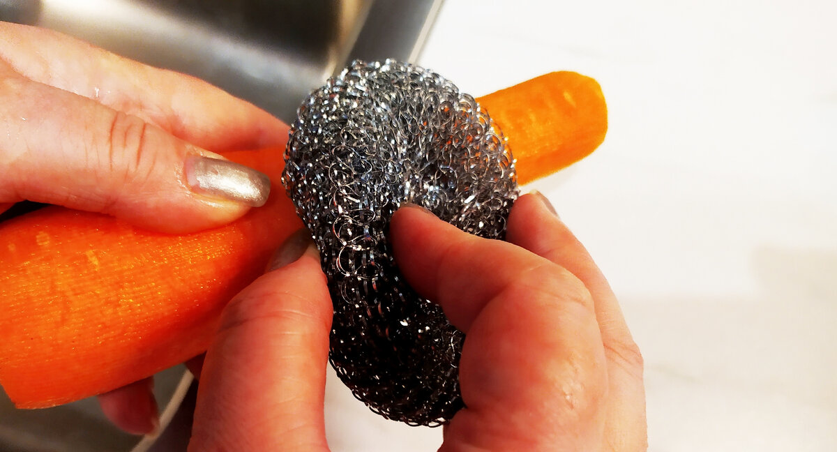 Зачем усложнять жизнь на кухне, если можно ее облегчить: предлагаю четыре практичных кухонных хитрости, о которых полезно знать и при необходимости применять. 1. Многие привыкли чистить морковь овощечисткой. То же самое можно сделать и с помощью металлической мочалки - чистящей спиралью из нержавейки. Этот способ практичен вне дома, например, на даче, если под рукой нет овощечистки. 2. Как нагреть две-три миски с едой в микроволновке одновременно. Поставить еду в микроволновку и разогреть - не проблема, если необходимо разогреть одну порцию для одного человека. Для двоих это сделать немного сложнее. Если только кто-то первым доберётся до микроволновки, тот первым и подогреет. Обычно две миски не помещаются рядом друг с другом, поэтому их приходится разогревать одну за другой. Однако есть хитрость: все-таки можно разогреть в микроволновке две-три миски одновременно таким способом, как представлено на фото. 3. Разделочные доски - идеальная среда для размножения бактерий. Чтобы освежит