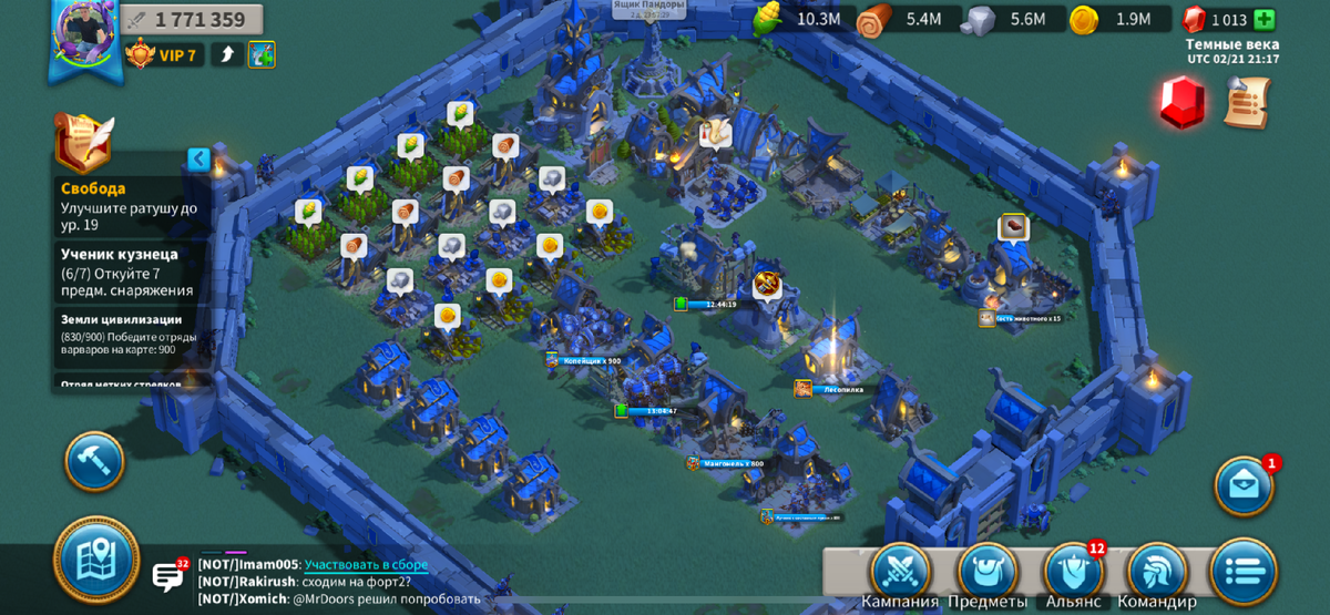 Необходимо активно работать над развитием основных ресурсов вашего города: дерева, камня, золота и пищи. Эти ресурсы играют важную роль в строительстве, тренировке войск и исследованиях.