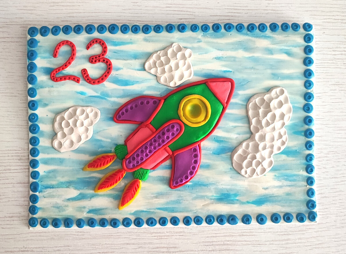 День Защитника Отечества — особенный праздник для всех мужчин. И чтобы порадовать своих пап, дедушек, учителей и всех тех, кто служил и служит в армии, дети готовят различные подарки. Сегодня мы с Вами будем создавать аппликацию из пластилина на картоне , где будет изображение ракеты в небе,эта поделка на 23 февраля, кто служил в ракетных войсках . Мы делаем поделки своими руками для выставки в детский сад или в школ, все они простые в изготовлении. Подобные занятия помогут детям выразить свою любовь и уважение к защитникам Отечества и привить им чувство патриотизма. На моём канале в разделе подбородок под названием Поделки к 23 февраля много разных вариантов пластилиновой лепки и из цветной бумаги к празднику .