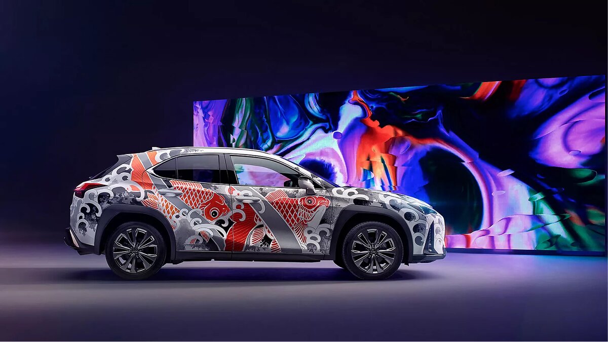 Lexus UX идеально подошел для воплощения проекта благодаря своим обтекаемым формам. Все, начиная от боковых линий кузова и заканчивая формой окон, выглядит очень динамично и красиво. Модель отлично вписалась в концепцию и дизайн.