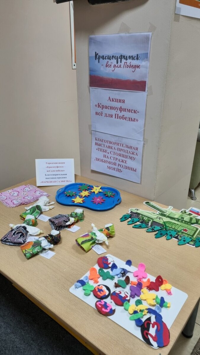 В городе продолжается акция «Красноуфимск — все для Победы». В ее рамках, посещая благотворительные мероприятия, горожане могут внести свой вклад в приобретение вещей, которые попросили доставить в зону СВО наши земляки — бойцы полка 14/53. К акции присоединились и дети — воспитанники детских садов и школьники. На благотворительном концерте в ЦРР-детский сад помимо интересных номеров можно было посмотреть мастер-класс по изготовлению зефира «Сладкий салют» (его провела Екатерина Елисеева). Во время мероприятия собрали 3 600 рублей. Также там прошла благотворительная ярмарка. Мероприятия в рамках акции состоялись и во втором здании ЦРР — на ул. Нефтяников. Они проводились совместно со школой №4. А это — благотворительный концерт в детском саду №17. В детском саду №7 состоялись мастер-классы и ярмарка. Юные туристы тоже приняли участие в акции. Во время соревнований по спортивному туризму «Пока не стаял снег» проходил сбор средств. Воспитатели и дети из детского сада №14 узнали, что наш