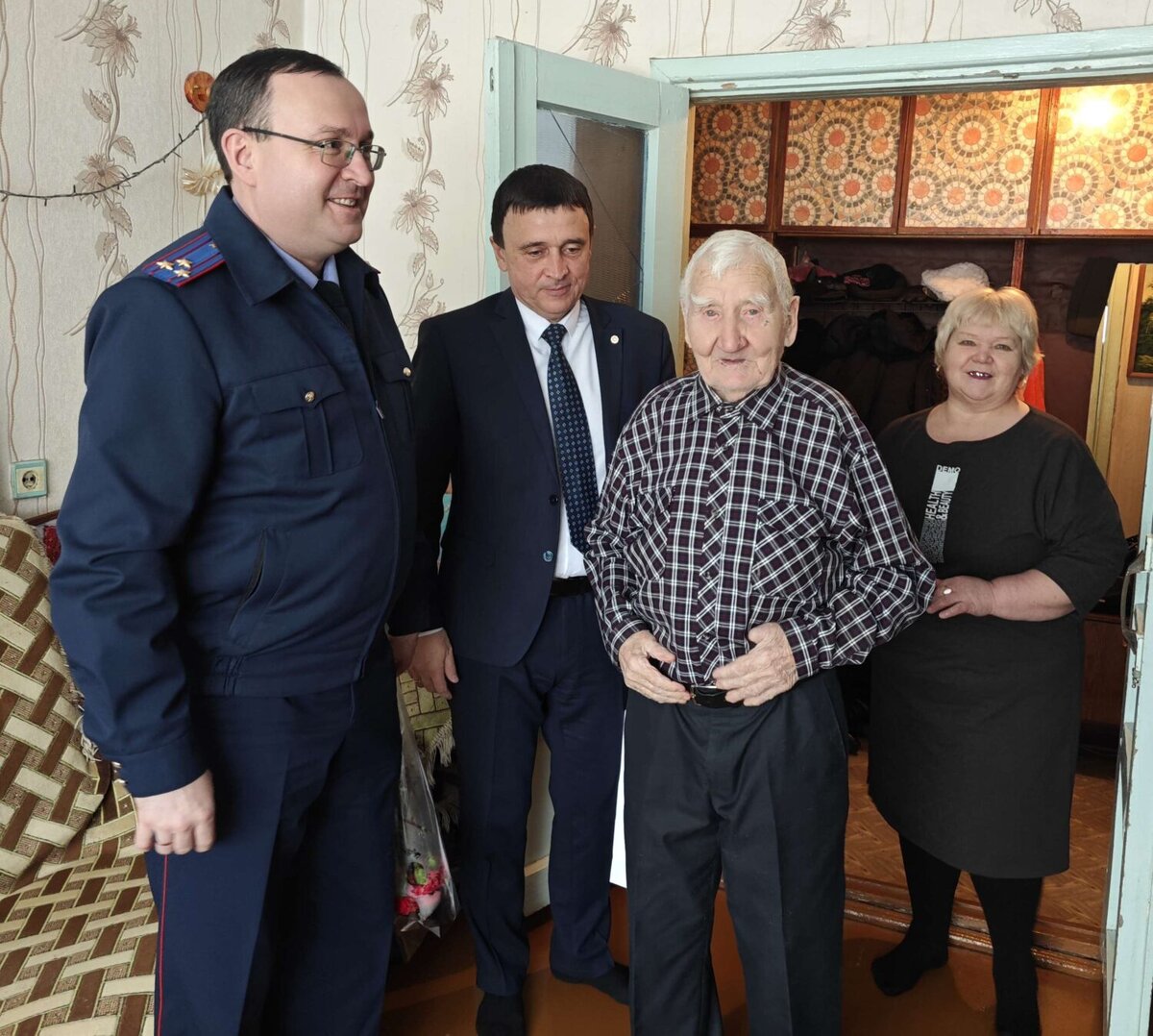 Глава города Михаил Конев всегда лично поздравляет наших уважаемых ветеранов с праздниками, старается окружить их заботой и вниманием, постоянно интересуется, не нужно ли чего-нибудь, и выполняет просьбы этих уже далеко не молодых, но все еще бодрых людей. Вот и в преддверие Дня защитника Отечества он совместно с начальником следственного отдела по городу Красноуфимск Сергеем Пустынниковым навестили участников Великой Отечественной войны, друзей-соседей Валентина Степановича Белоусова и Ивана Васильевича Игошева. А заместитель Главы Юрий Ладейщиков по его поручению встретился с Анатолием Яковлевичем Моховым. Валентину Степановичу Белоусову в этом году исполняется 99 лет. Он был призван в Красною Армию в ноябре 1943 года, направлен в 15-й учебный танковый полк, где прошел обучение на заряжающего в самоходной артиллерийской установке. После обучения принимал участие в боевых действиях на Украине, в Венгрии, в Австрии в составе 3-го Украинского фронта 110-й танковой бригады 88-го гвардейс
