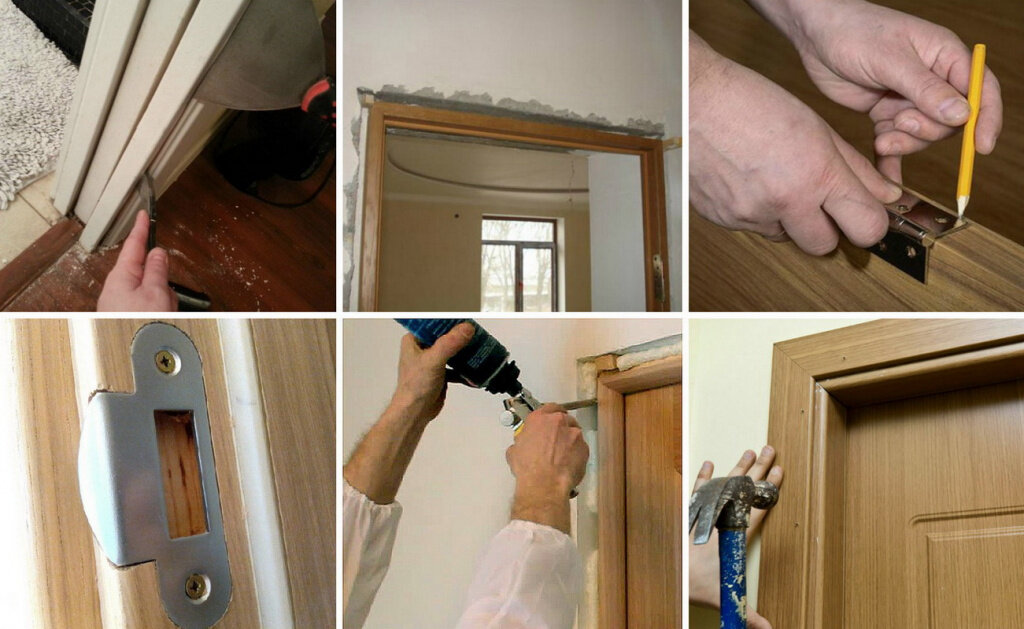 Последовательность можно незначительно менять. Например, иногда удобнее после навешивания дверного полотна сразу установить ручки и только потом — доборы и наличники.