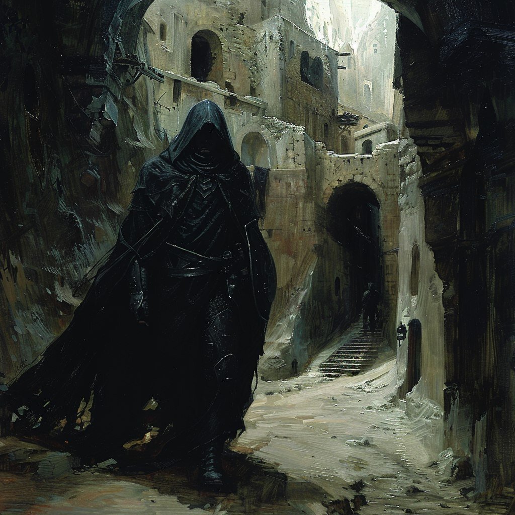 Но Скрытень не был новичком в играх смерти и тени. Он слышит, почти чувствует металлический запах ножа одного из охранников, и его шаги становятся быстрее, молниеносно меняя направление, ввергая охрану в замешательство. Он нырнул в темную арку, примыкающую к кузнице, и тень его плаща скользнула за угол, словно исчезнувшая мгла.