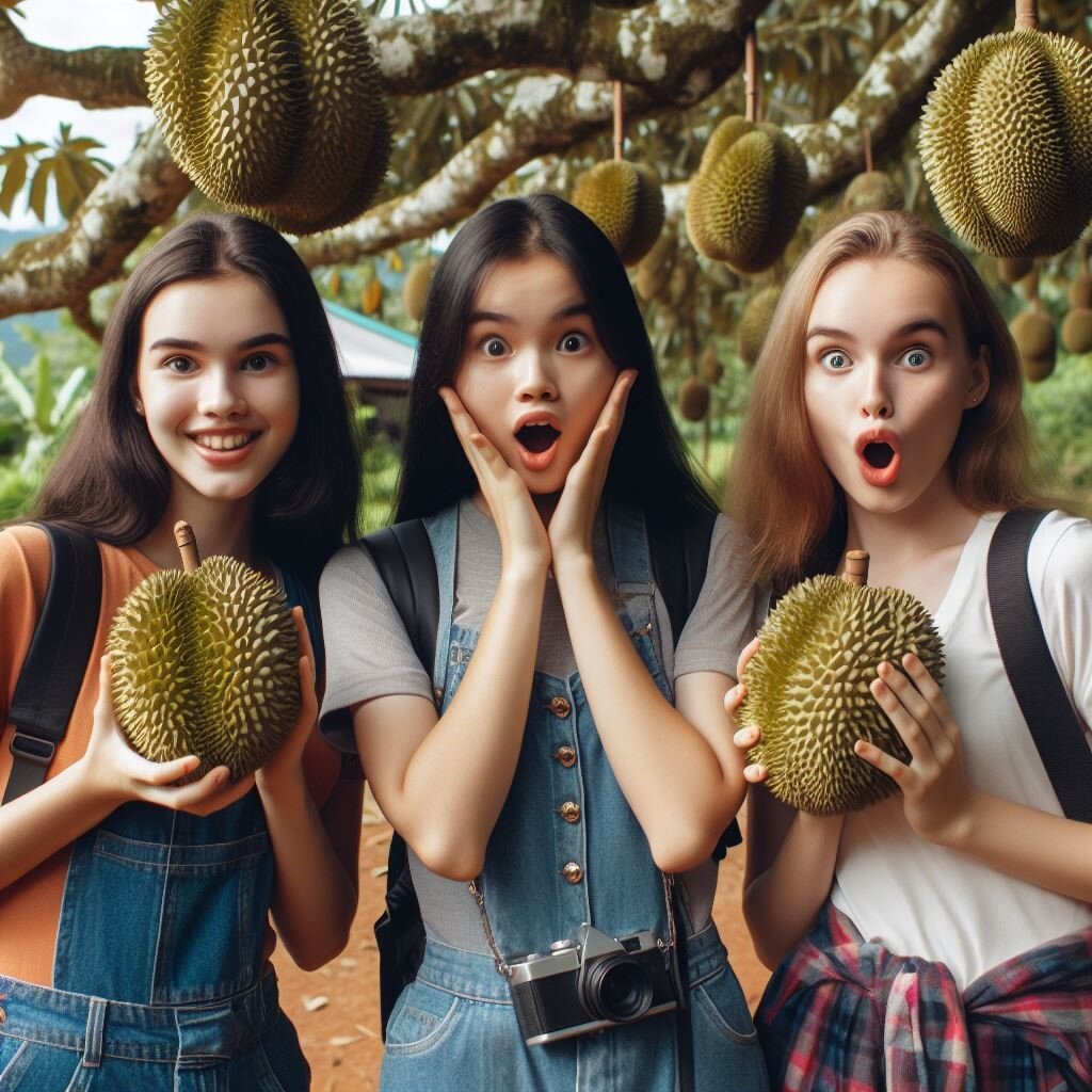 Однажды солнечным днем, прогуливаясь по шумным улицам города, троица наткнулась на уличного торговца, продававшего необычный фрукт, которого они никогда раньше не видели, - печально известный дуриан, известный своим резким запахом и противоречивым вкусом.