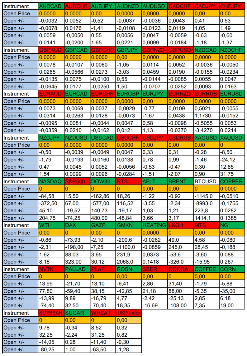 Весь перечень анализируемых активов указан ниже в общем количестве 60 инструментов. Здесь Вы найдете активы рынка Форекс, популярные активы Московской биржи, популярные активы Чикагской биржи СМЕ и мажор криптовалютного сегмента - Биткоин.
