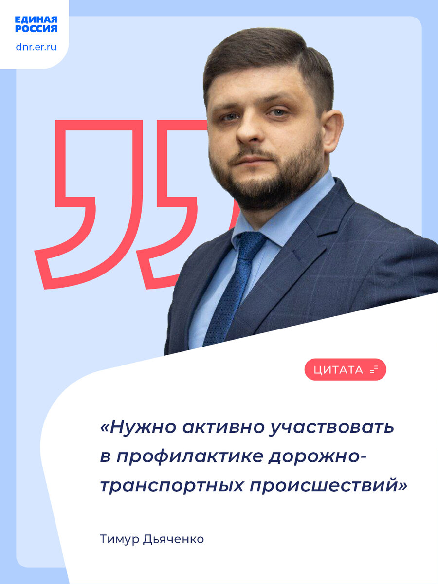 💬 «Мы абсолютно уверены, что необходимо не просто фиксировать места ДТП, а нужно анализировать причины, условия, способствовавшие совершению ДТП, и решительно устранять их. Также нужно активно реагировать на запросы общества, участвовать в профилактике дорожно-транспортных происшествий», – отметил депутат Народного Совета ДНР, координатор партпроекта Единой России «Безопасные дороги» в ДНР Тимур Дьяченко.