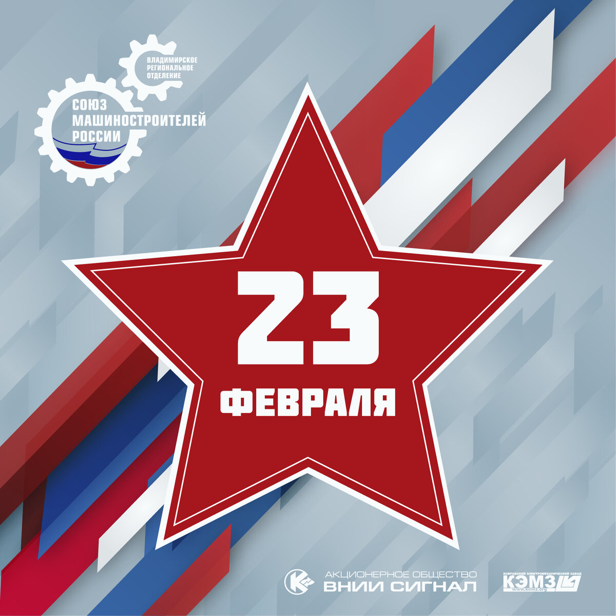 23 февраля – символ воинской доблести и чести, настоящий праздник сильных и мужественных людей, чья профессия защищать Родину, оберегать мирное небо, обеспечивать стабильное и независимое развитие России. Этот праздник по праву отмечают не только военнослужащие и ветераны, но и специалисты, которые неустанно работают на укрепление обороноспособности Российской Федерации, создают современные и эффективные образцы вооружения и военной техники, помогают оснастить нашу армию всем необходимым для успешного завершения СВО. Коллеги! Желаю вам твердости духа и несгибаемой воли, а нам всем вместе – скорейшей победы над фашизмом. Пусть чувство гордости за нашу державу, ее славная история и впредь помогают нам добиваться поставленных целей! С уважением, Генеральный директор АО «ВНИИ «Сигнал»- управляющей организации АО «КЭМЗ» В.А.Пименов