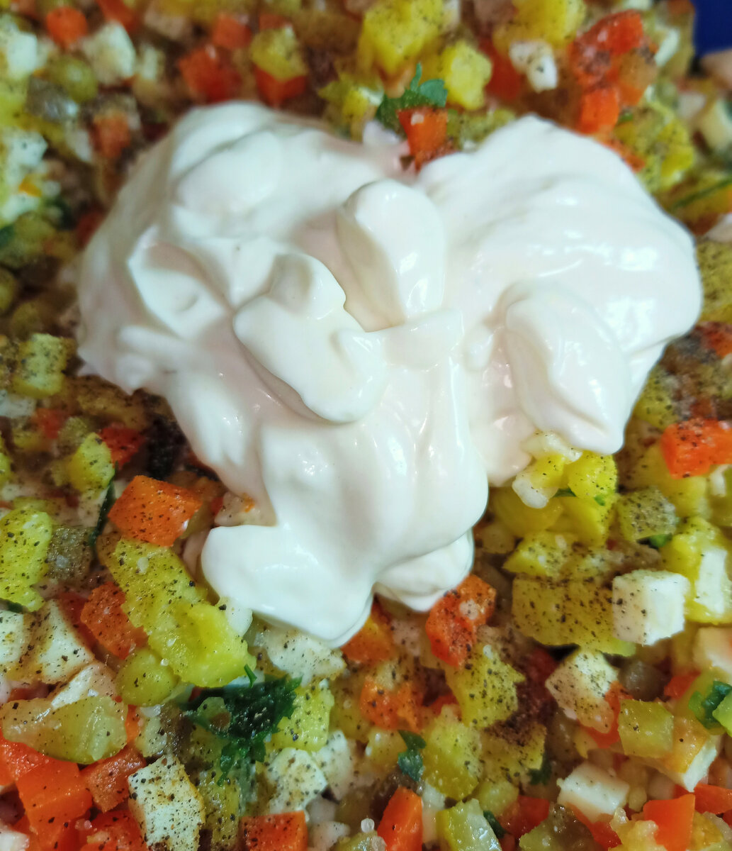 Для тех, кто не ест мясо или хочет попробовать новый вкус привычного блюда, предлагаю попробовать вегетарианскую версию салата "Оливье" с сыром. Ингредиенты: Отвариваем картофель и морковь до готовности, овощи чистим и режем небольшими кубиками. Перекладываем в большую миску. Сыр и огурцы тоже режем небольшими кубиками и добавляем к картошке с морковью. Зелёный лук или петрушку мелко режем и отправляем к салату. Пекинскую капусту (лучше использовать белую часть, не листовую) мелко режем, так, как вы бы порезали лук. Она даст небольшую хрустинку салату и немного добавит свежести. Солим и перчим по вкусу, заправляем майонезом и перемешиваем. Рецепт вегетарианского майонеза можно посмотреть здесь: А как коптить сыр в домашних условиях - здесь: Салат готов! Приятного аппетита! Подписывайтесь на мой канал, чтобы не пропустить новые рецепты! Будет вкусно!
