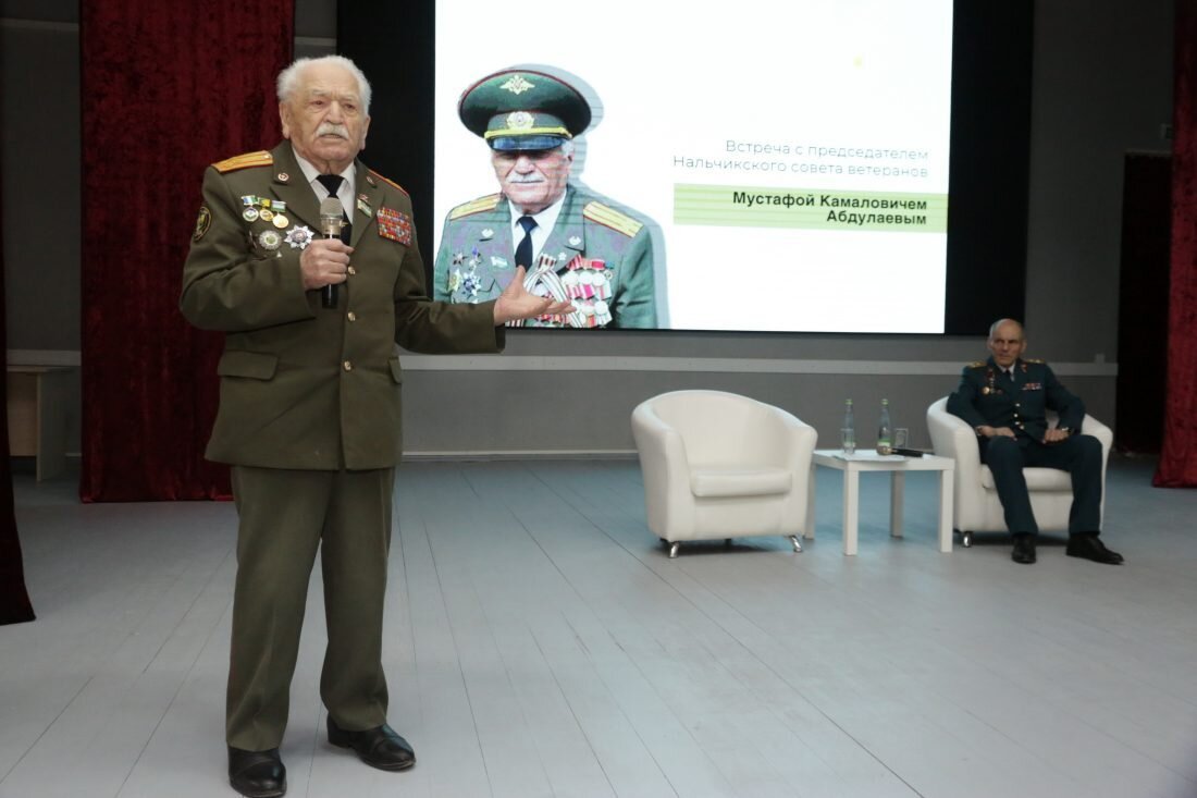 О становлении Российской армии, важных вехах истории страны, мужестве, героизме советских солдат на фронтах Великой Отечественной войны и подвигах тружеников тыла, о важности сохранения памяти о прошлом говорил со студентами Кабардино-Балкарского государственного университета им. Х. М. Бербекова председатель Нальчикского совета ветеранов войны, труда, Вооруженных сил и правоохранительных органов Мустафа Камалович Абдулаев. Встреча прошла 21 февраля 2024 года по инициативе Координационного профилактического центра КБГУ и Объединенного совета ветеранов КБГУ. Представляя именитого гостя, председатель Совета ветеранов КБГУ Хасан Шурдумов отметил, что Мустафа Абдулаев снискал уважение всей республики, он почетный гражданин г. Нальчика, внесший неоценимый вклад в духовное, интернациональное и патриотическое воспитание молодежи. Его биография – это символ бесконечной преданности своему делу, пример человечности, принципиальности и бескорыстного служения людям. «Мустафа Камалович окончил Гомел