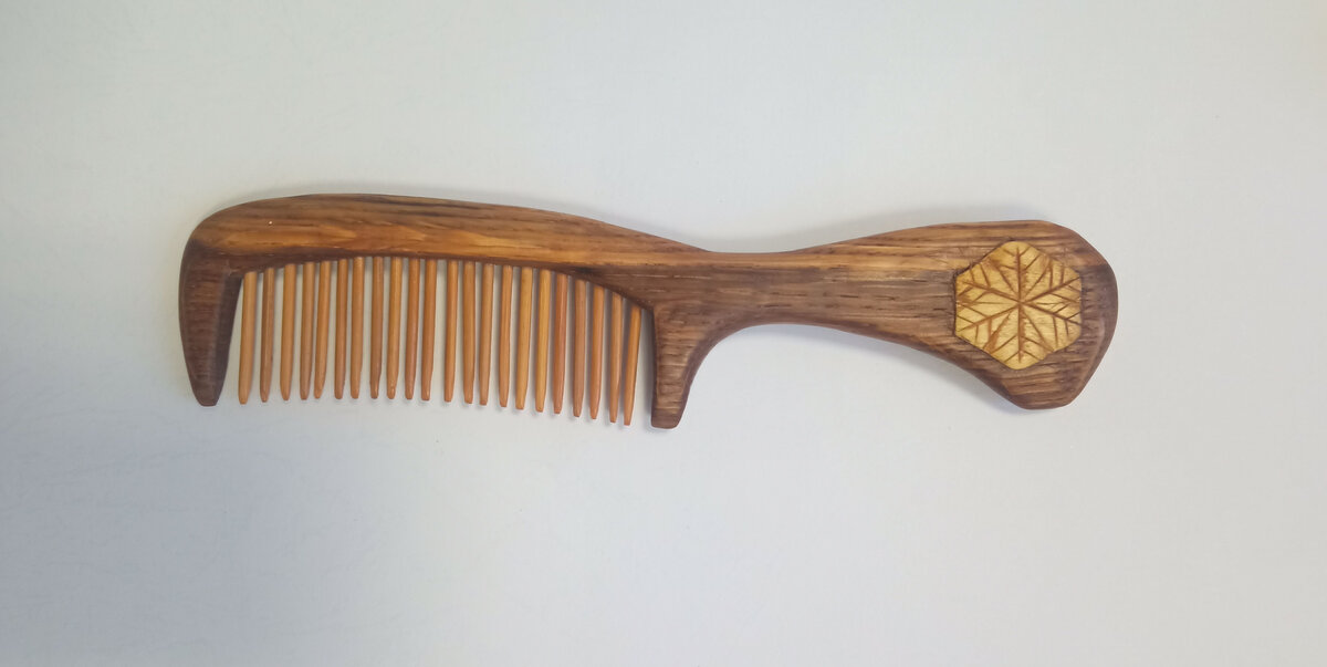 Прогреваю расческу в печке и пропитываю в льняном масле. Получившийся результат с одной стороны: