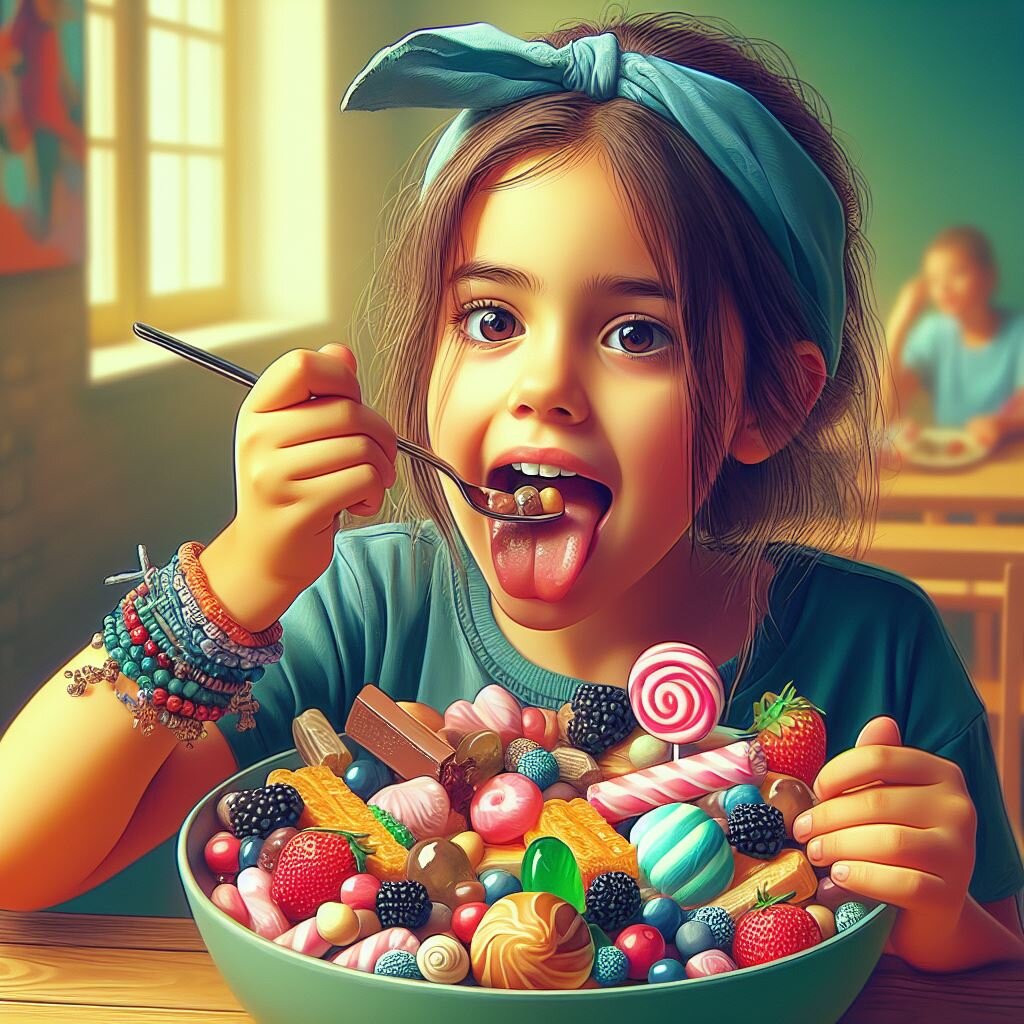 Аня любила сладости. Она ела их каждый день: конфеты, печенье, торты, шоколад. Она думала, что это делает ее счастливой, но на самом деле это было вредно для ее здоровья. Она часто чувствовала себя усталой, раздражительной и болезненной. Ее зубы страдали от кариеса, а ее кожа от прыщей. Ее мама говорила ей, что она должна есть больше фруктов и овощей, но Аня не слушала ее. Однажды Аня пошла в школу и увидела, что ее подруга Лена выглядит очень красиво и здорово. У нее были блестящие волосы, чистая кожа и яркая улыбка. Аня спросила ее, что она делает, чтобы так хорошо выглядеть. Лена ответила, что она стала питаться здорово. Она рассказала, что она ест много овощей, фруктов, злаков, бобов, орехов и семян. Она также пьет много воды и избегает сахара, жира и соли. Она сказала, что это помогает ей чувствовать себя бодрой, счастливой и здоровой. Аня заинтересовалась и решила попробовать здоровое питание. Она попросила свою маму купить ей разные овощи и фрукты. Она начала готовить себе