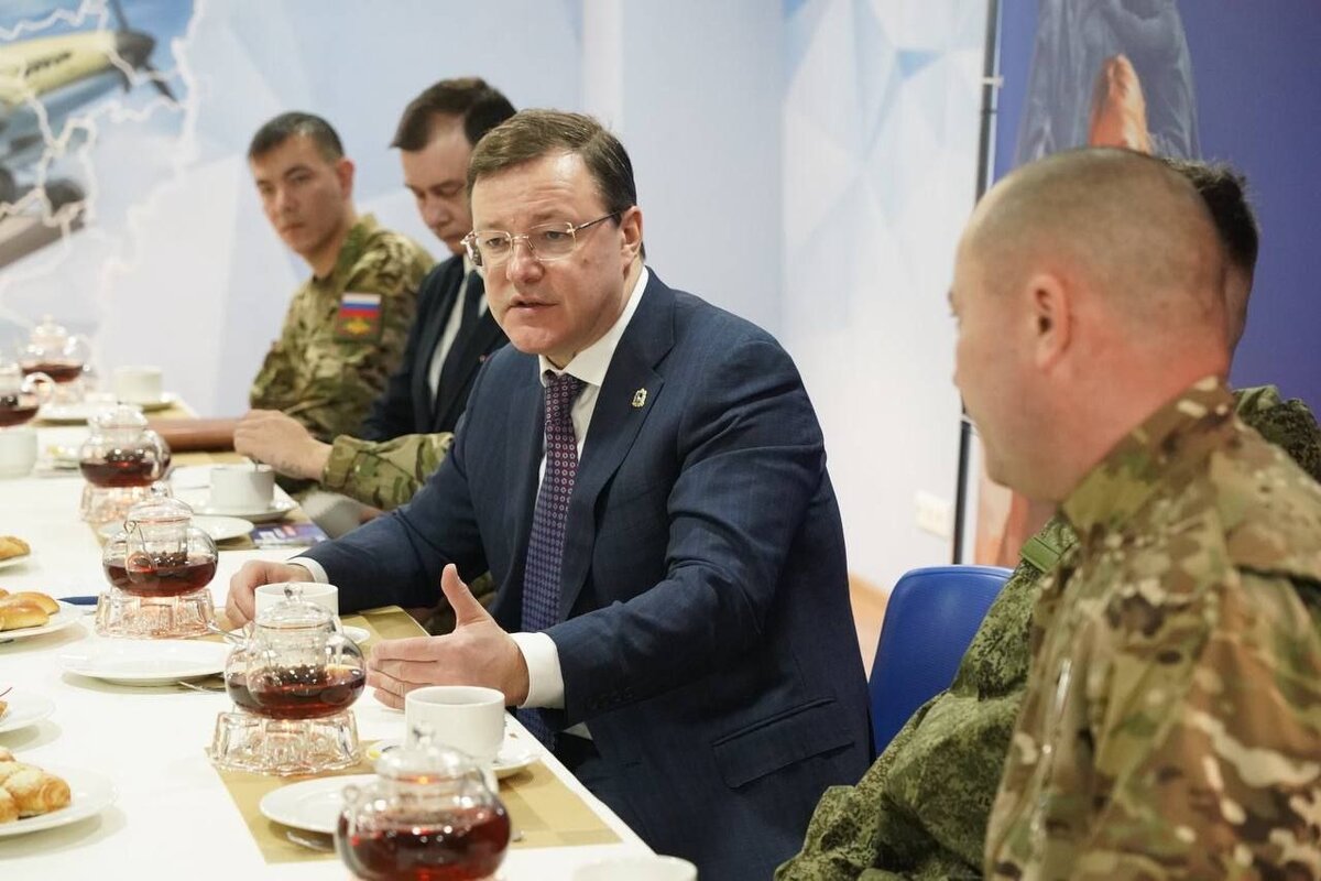 Встреча прошла в Доме офицеров перед началом торжественного собрания ко Дню защитнику Отечества. - Спасибо вам большое, что сегодня вы здесь, - обратился к участникам специальной военной операции губернатор. - Очень рад, что герои-освободители Авдеевки принимают участие в нашем торжественном собрании. Каждый из вас внес свой вклад в эту Победу, которая, уверен, войдет в учебники истории, - подчеркнул Дмитрий Азаров. Командующий 2-й гвардейской общевойсковой Краснознаменной армией, гвардии генерал-лейтенант Андрей Колотовкин, который несколько дней назад вернулся с линии фронта, от имени бойцов с передовой поблагодарил главу региона и всех его жителей за оказываемую поддержку: - Самарская область очень хорошо нас поддерживает, ребята обеспечены всем. Большое вам спасибо! Мы не подведем. На встрече с бойцами губернатор взял на личный контроль все просьбы и обращения военнослужащих. Например, боец из Большечерниговского района, отец четверых детей, рассказал, что его сын заканчивает 4-й