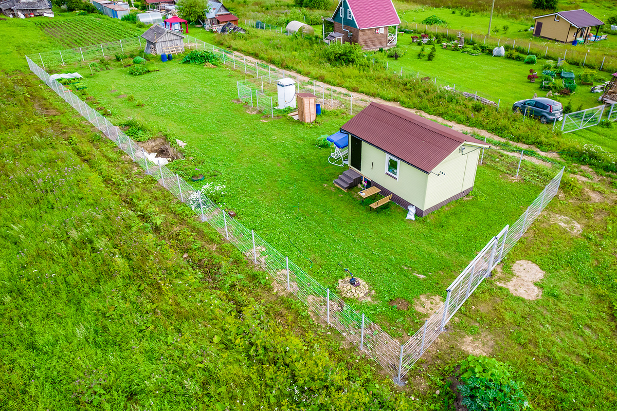 - Сад/огород. На участках с достаточным свободным пространством (от 12 соток) обустраиваются садово-парковые зоны для прогулок и высадки плодовых и декоративных деревьев. На участках до 10 соток владельцы ограничиваются огородом и хозяйственными постройками для хранения инвентаря и техники.