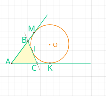 10. ★☆☆ Окружности касаются сторон угла с вершиной A в точках M и K. Касательная к этой окружности пересекает отрезки AM и AK в точках B и C. Докажите, что периметр треугольника ABC не зависит от выбора этой касательной Идея решения