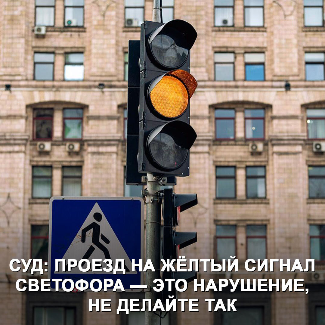 Теперь суд постановил, что жёлтый сигнал светофора является запрещающим и свидетельствует о скорой смене сигнала. Увидели жёлтый — тормозите.