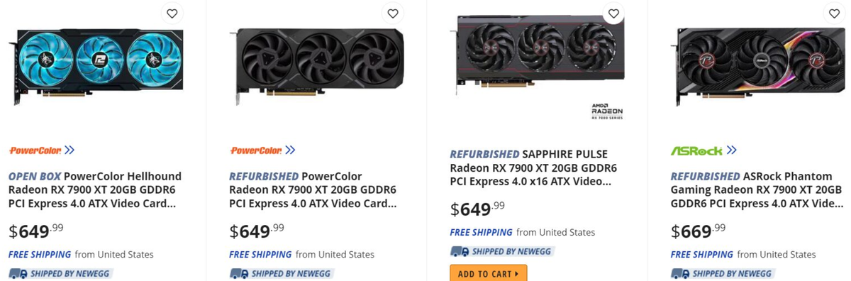 После недавнего снижения стоимости Radeon RX 7900 XT до 699 долларов в некоторых магазинах в феврале, цена на данную видеокарту возвращается к диапазону от 729 до 749 долларов, и дополнительным негативным моментом является отсутствие на данный момент каких-либо акций с бесплатными играми в комплекте. Таким образом сейчас не самое лучшее время для покупки RX 7900 XT, если только геймеры не готовы изучить воспользоваться альтернативными возможностями её приобретения.
