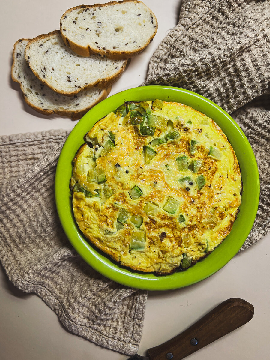Бонжорно, котики! Бывает у вас такое: остается маленький кусочек сыра, недоеденный хлеб, попка от огурца?) У меня, например, частенько. И зачастую так и пропадали продукты и потом улетали в мусорное ведро.. Но беременность и появление малыша на меня повлияли и в этом направлении. Теперь я стараюсь максимально использовать всё от корочки до корочки, режим сбережения на максималках)) Мечта - сделать детокс холодильника, но об этом позже. И вот скиталась я голодная, открываю холодильник с мыслью пожарить глазунью и вижу: сыр на грани, кусочек кабачка в таком же обмороке, молоко открытое которое никто не пьет. Мой мозг в этот момент вспомнил рецепт оладушек из кабачка с сыром, которые на днях готовила моя сестра, и преобразил его в омлет! Итак, на моей кухне появился сырный омлет с кабачком. Кабачок режем небольшими кубиками. Натираем сыр, лучше на крупной терке. После чего ставим греться сковородку на средний огонь. Смешиваем яйца с молоком. Соль/перец добавляем по вкусу. Хорошенько взба