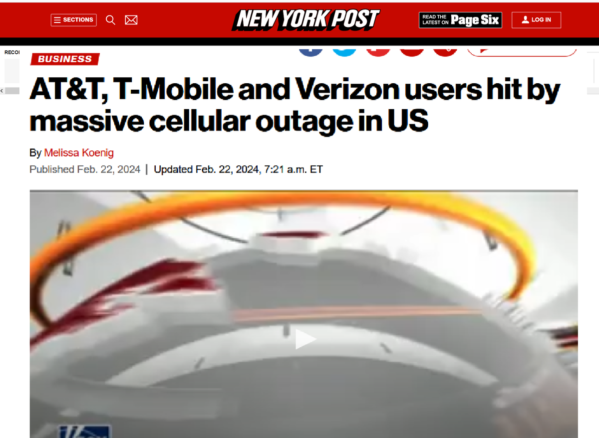 Пользователи AT & T, T-Mobile и Verizon пострадали от массового отключения сотовой связи в США. 22.02.2024