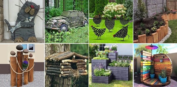 Приближается очередной сезон садовых хлопот и хочется добавить в сад декора — для пользы, юмора и настроения! Вашему вниманию несколько креативных идей! Деревянные скульптуры Оговоримся сразу, что идея непростая. Для ее воплощения нужен хороший инструмент и некоторые навыки работы с деревом. Если у вас это есть, скульптурам быть! Из камня Очень интересные идеи. К сожалению, для большинства «рядовых» садоводов-огородников, слишком сложные для воплощения. Все равно решила их включить в подборку, так как, ну очень мне понравились! Из металла Еще один непростой материал, с которым без навыков и опыта не «договориться». Если работа с металлом — ваш профиль, креативность газону будет обеспечена! Бордюры Если вы — любитель садов в природном стиле, ваши клумбы вполне смогут обойтись без обрамления. Но если хочется, чтоб во дворе было ощущение ландшафтного дизайна, нужны бордюры. Деревянные фигуры По-моему, очень интересная идея. И не сказать, чтоб, прямо, неосуществимая! Из веток Даже если пти