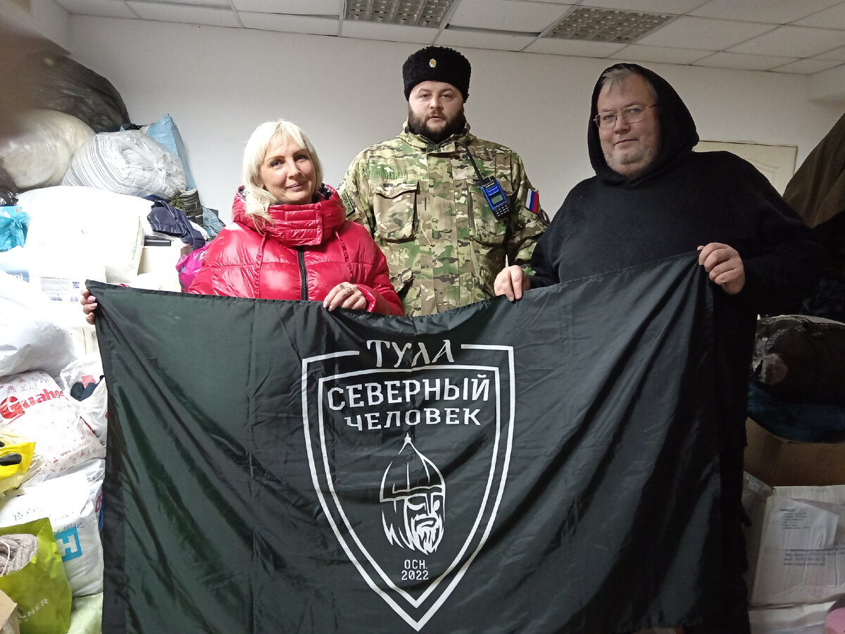 В доставке принимали участие 3 волонтерских группы: С Верой к победе, ЧВК МЕХ, Берегини и наш фонд "Код жизни". Также в пездке принимал участие Руслан, представитель Северный человек - Тула. Огромное спасибо этому большому (2м10 см) и доброму человеку. Я по сравнению с ним мальчик.