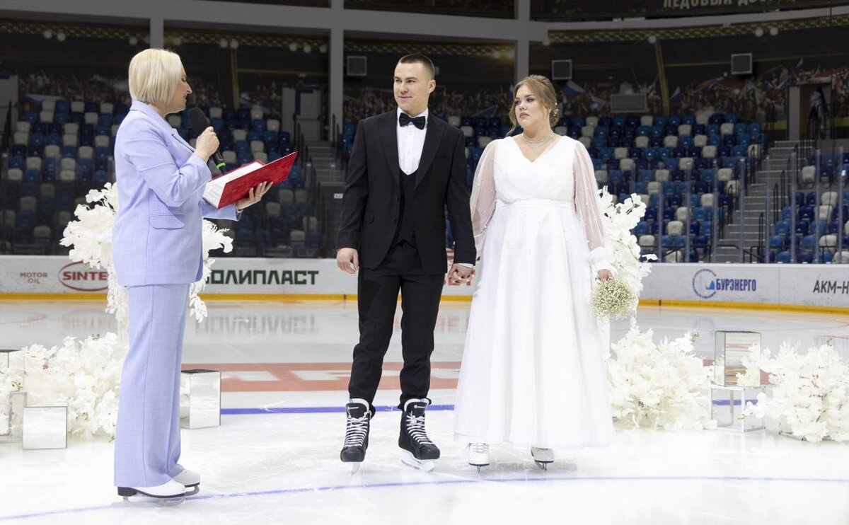 Спойлер: совсем скоро необычные выездные регистрации станут в Тульской области традицией. В четверг, 22 февраля Ледовый дворец в Туле увидел самое необычное событие за всю свою историю. Сотрудники ЗАГС провели выездную свадебную регистрацию прямо на льду. Мирослава и Даниил Иваницкие решили узаконить свои отношения весьма непривычно – стоя на коньках. Никто из молодоженов с фигурным катанием и хоккеем не связан. Но каток – одно из их любимых зимних развлечений. Пара часто приходит покататься на Губернском катке или в Центральном парке. – Нам хотелось чего-то необычного, – рассказывают ребята. – Мы вместе уже 4,5 года. Даниил любит разные виды спорта, много чем занимается, поэтому мы подумали, а почему бы не связать регистрацию с этим? Свадьба в Ледовом дворце была нашей мечтой: до нас в Туле никто подобного не делал. Да и место тут очень красивое. Мы обратились в ЗАГС с идеей, а нас там поддержали! Мы приятно удивлены тем, насколько креативные люди там работают. Нам не пришлось даже са