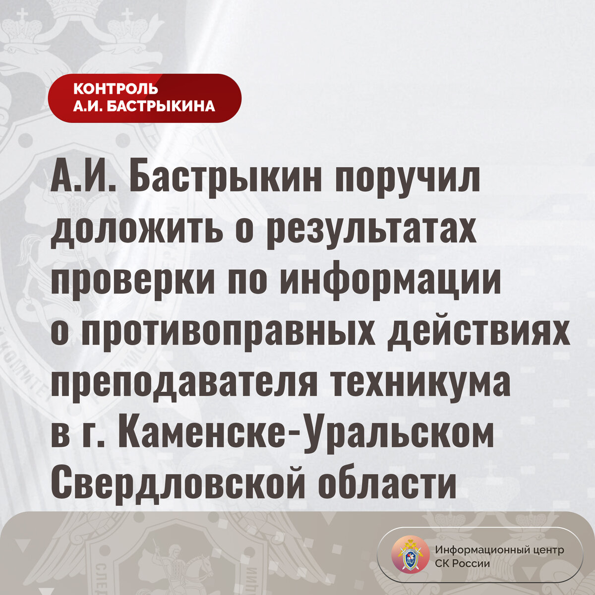 А.И. Бастрыкин поручил доложить о результатах проверки по информации о противоправных действиях преподавателя техникума в г. Каменске-Уральском Свердловской области