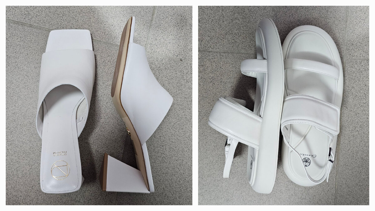 Пару недель назад я уже жаловалась, что с подбором летней обуви у меня большие трудности из-за длинной ступни практически без подъема и показывала первую партию примеренных белых моделей. Да, я начала сильно заранее, но и штормит меня неслабо: от элегантности до очень объемных сандалий Начну c WB Там были примеряны как раз две совершенно противоположных модели - минималистичные элегантные сабо и максимально комфортные сандалии с "архитектурными излишествами" в виде широкого ранта. Сабо внешне хороши, стильные благодаря четким линиям и интересному каблуку. Колодка очень удобная, особенно с учетом того, что каблуки я ношу максимально редко. Рассчитаны на среднюю по полноте ногу, но хоть с каким - то подъемом, мне совсем чуть не хватило. На свою стопу 25,8 см я привычно заказала 39 (в Эконике чаще всего у меня именно он, иногда 38,5). И по длине ок, просто немного выезжает нога вперед из - за недостатка подъема, поэтому в пятке кажется много свободного места: Несколько тонких моментов: к