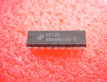 HT12D - это интегральная схема (IC), созданная компанией Holtek. Это 18 - контактный двухрядный прямолинейный инкапсулятор (DIP) для систем дистанционного управления.ОписаниеHT12D - это интегральная схема CMOS, используемая в системах дистанционного управления. Это кодер, используемый для преобразования 12 - битных параллельных данных в последовательные данные. Он используется в сочетании с HT12E IC в качестве декодера. HT12D способен кодировать 12 - битные данные в последовательный поток от 4 до 16 импульсов. Он также имеет адресный замок, который может хранить 8 - битные адресные данные.Характеристики:\\r \n 12 - битное параллельное кодирование данных\\r \n 8 - битный адресный замок\r \n 4 - 16 импульсный последовательный выходТехнология CMOS с низким энергопотреблениемРабочее напряжение от 2,4В до 12В\\r \n Рабочие температуры от - 40°C до 85°CПрименение:\\r \n Дистанционная система управления\\r \n Автомобильные приложения\r \n Системы домашней автоматизации\r \n Системы безопаснос